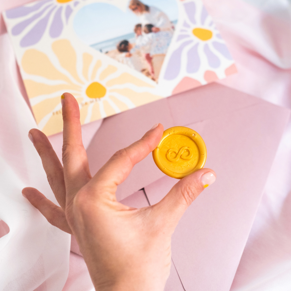Também podes pedir para os envelopes serem fechados com lacre mediante um extra de 1,35€. O lacre está disponível em 12 cores diferentes. Fica um convite verdadeiramente especial.